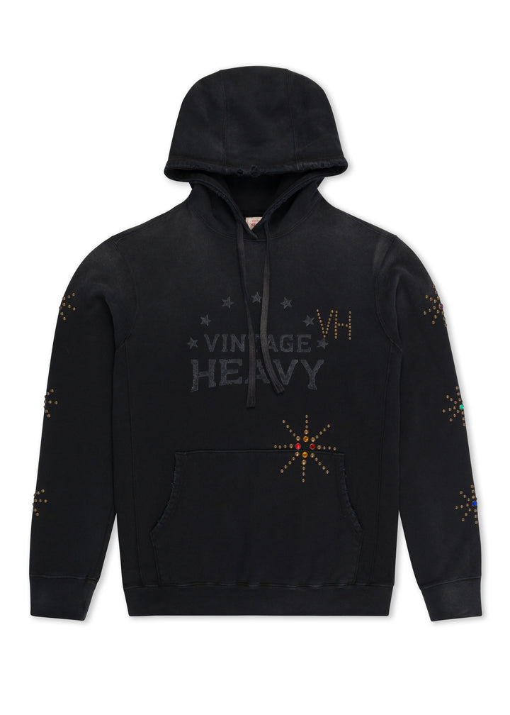 - Black Sun Faded Logo Hoodie with Studs Fabric