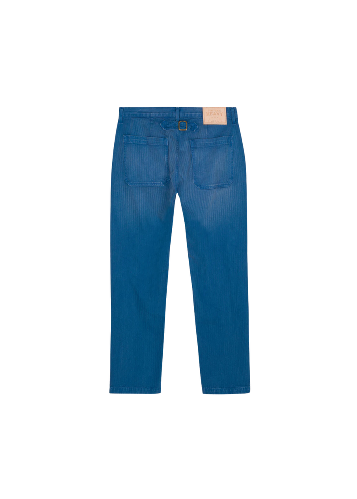 Indigo Sunfaded Herringbone Buckle Back Straight Leg Pant