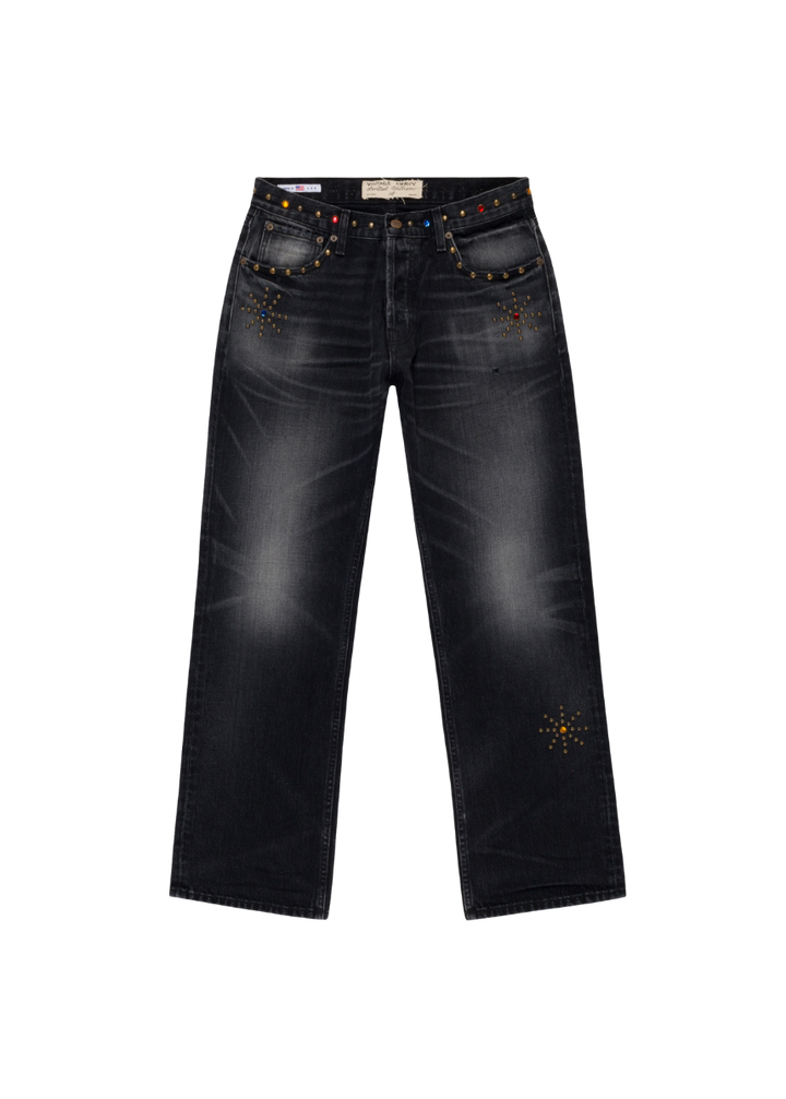 - 12.5 oz 5 Pocket Black Bootcut Jean w / Studs
